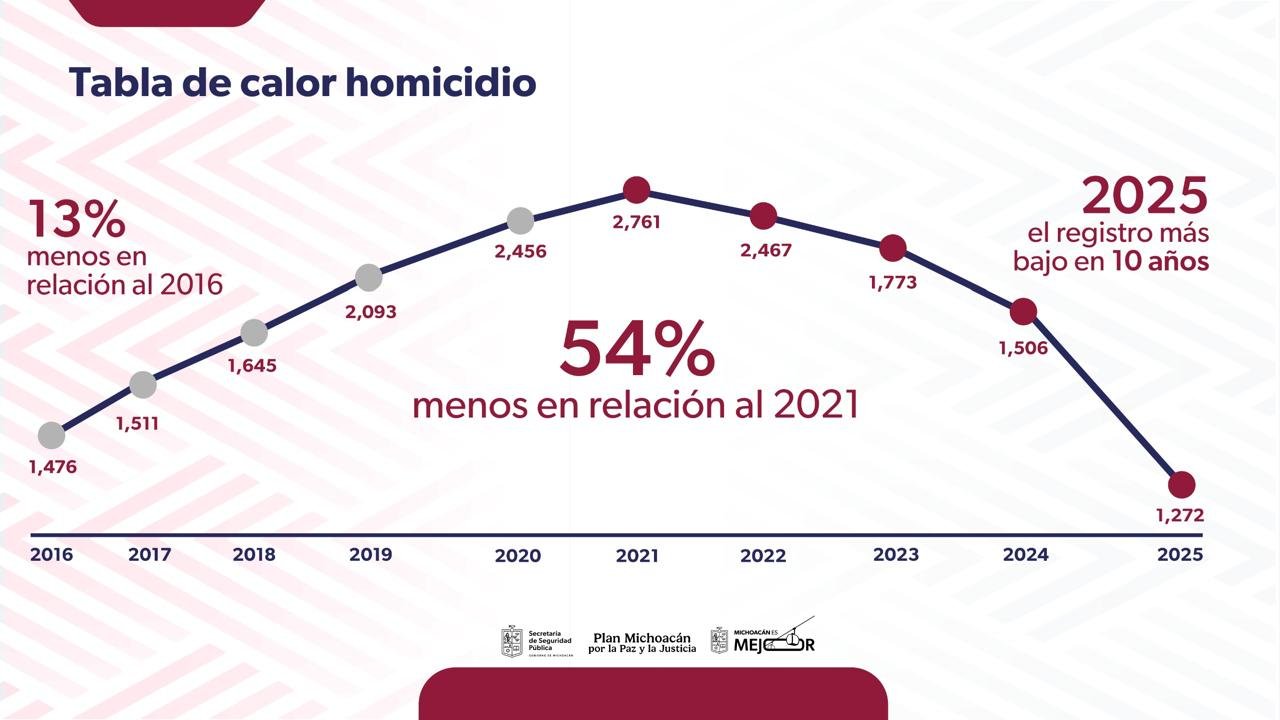 2025, el año con menos homicidios en la última década en Michoacán